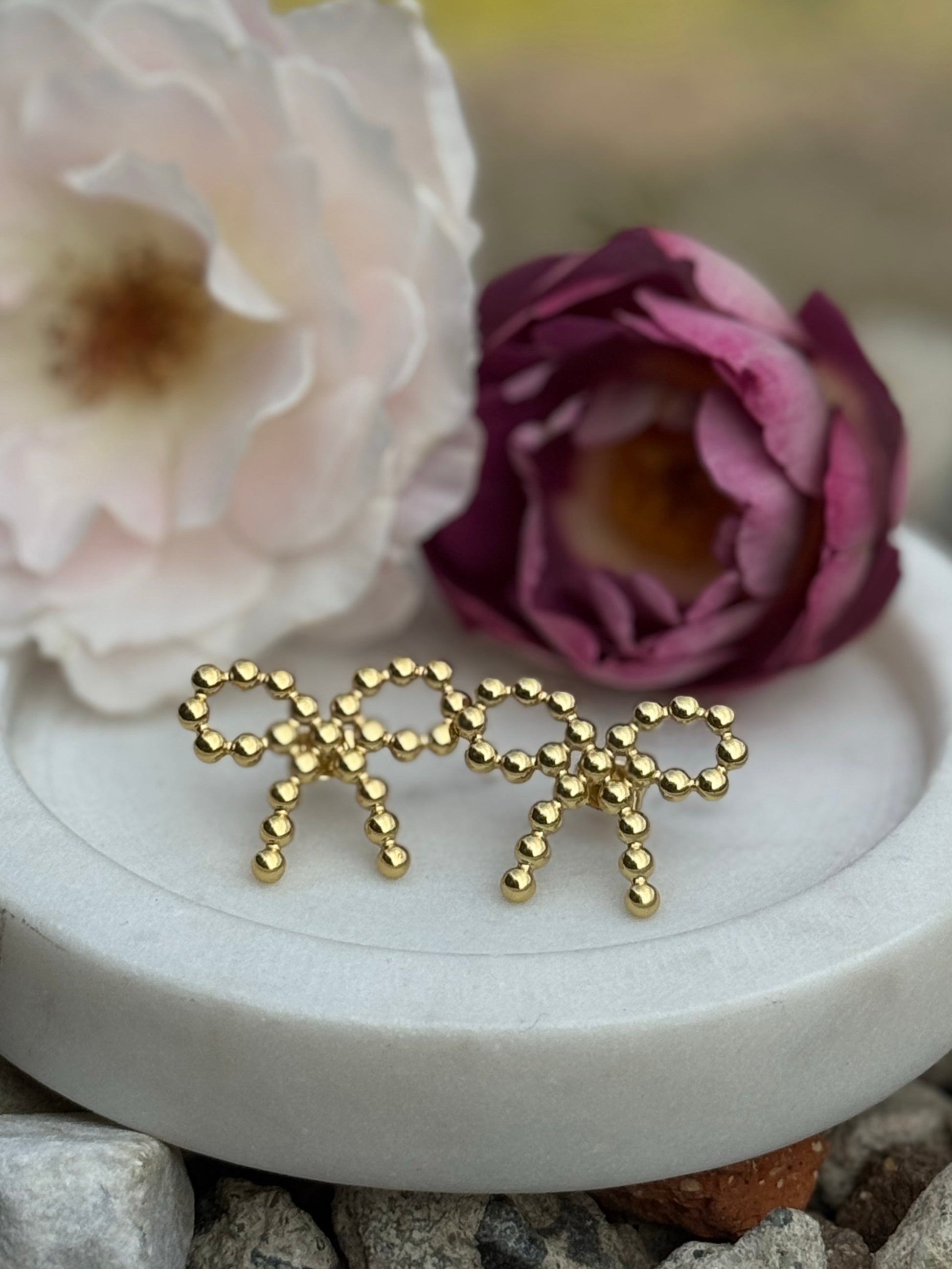 Make a chic, playful statement with our Bold Bow Stud Earrings. Designed with a beaded silhouette and polished to perfection, these bows bring a touch of fun and fashion to any look.