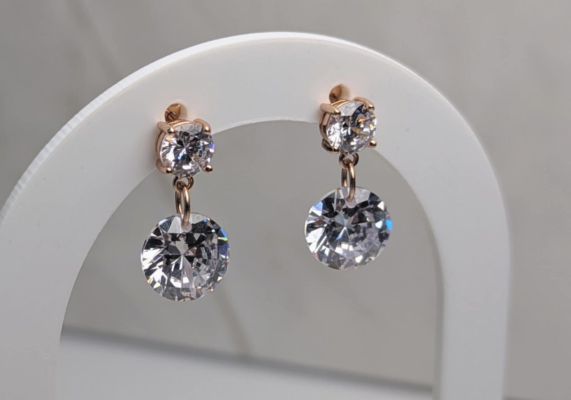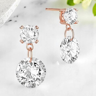 Add effortless sparkle to your collection with these .925 Sterling Silver Dangle Stud Earrings, beautifully plated in rose gold. Designed with AAA-grade cubic zirconia, each earring features a shimmering 6mm top stone and a stunning 10mm drop zircon, creating a timeless and eye-catching look.