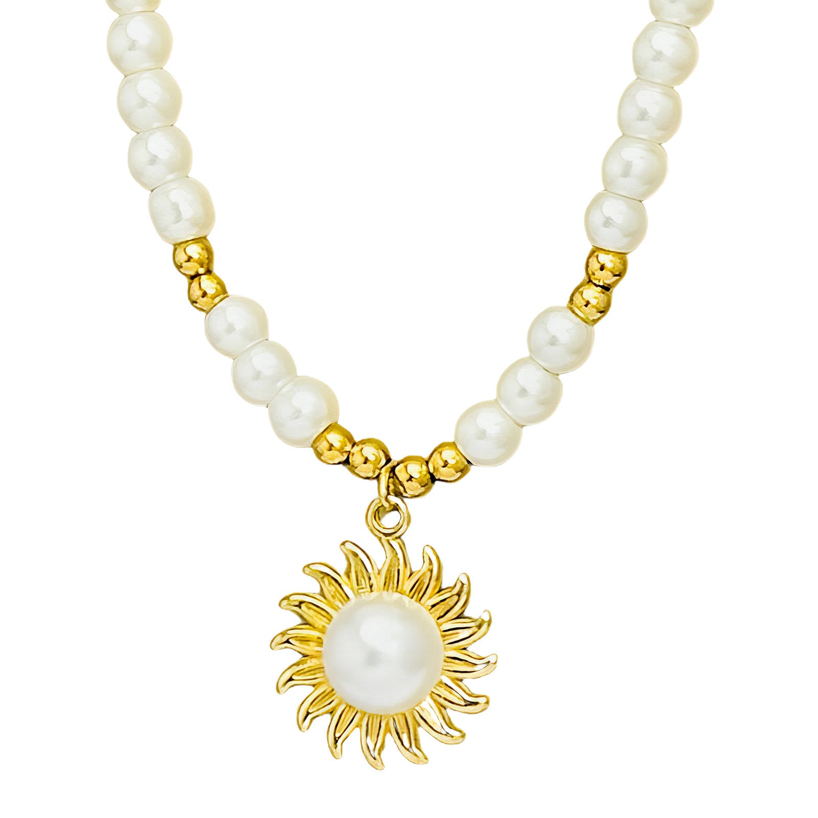 Sun Pendant Pearl Necklace – 18K Gold Plated, Waterproof, Hypoallergenic